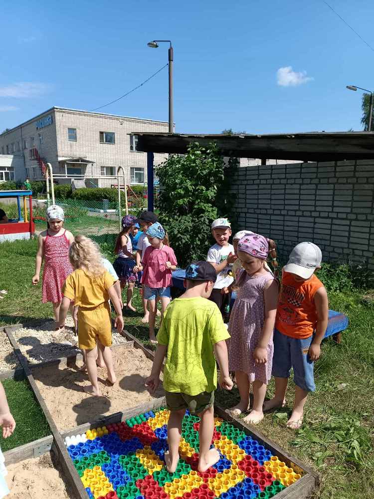 Наконец-то, погода позволила нам этим летом открыть массажную дорожку, которая была сделана для наших воспитанников на территории детского сада.