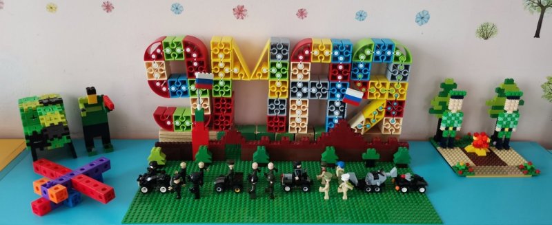 А наши ребята из подготовительной группы номер 16 решили создать свой необычный парад: с помощью игрового конструктора Лего воспитанники группы вместе со своим воспитателем Светланой Владимировной Романовой сняли мультипликационный фильм "Парад победы".