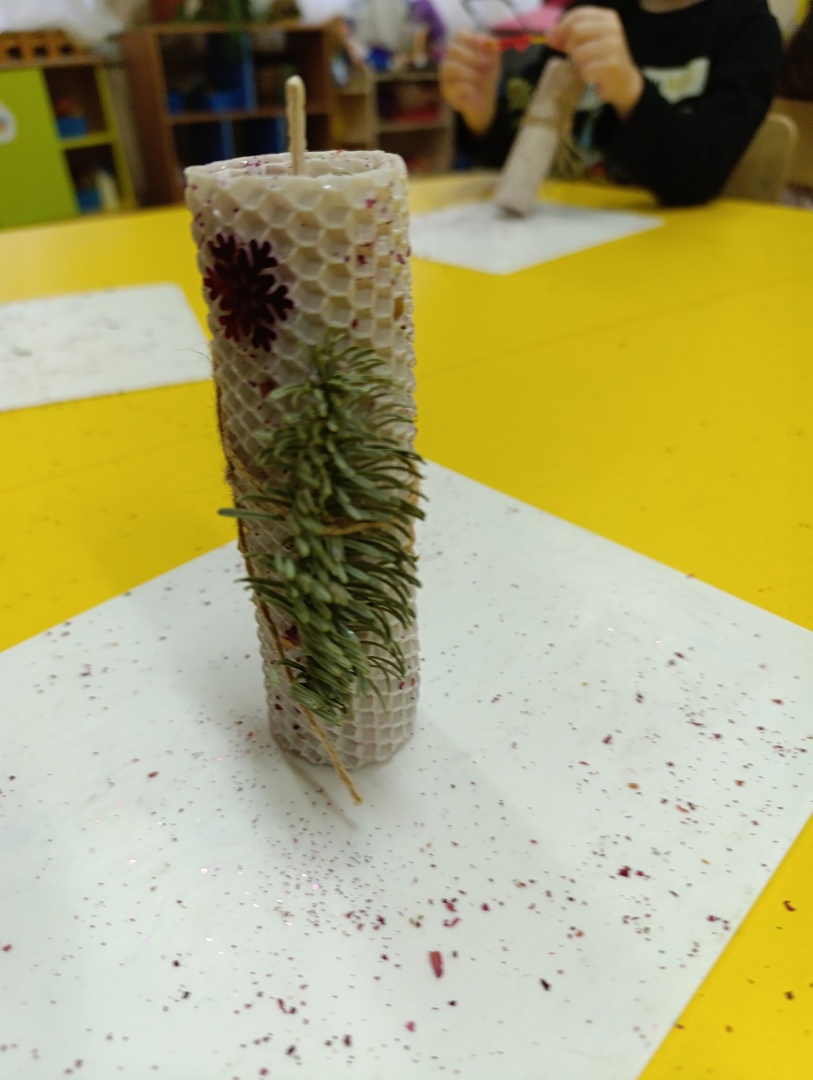 В предвкушении волшебного праздника каждому хочется подарить или получить подарок, а если этот подарок сделан своими руками,он особенно ценен. В старшей группе номер 12 Чинаева Ирина Валерьевна, мама воспитанницы Мамаевой Софии, провела мастер-класс по изготовлению новогодней свечи из натуральной вощины.