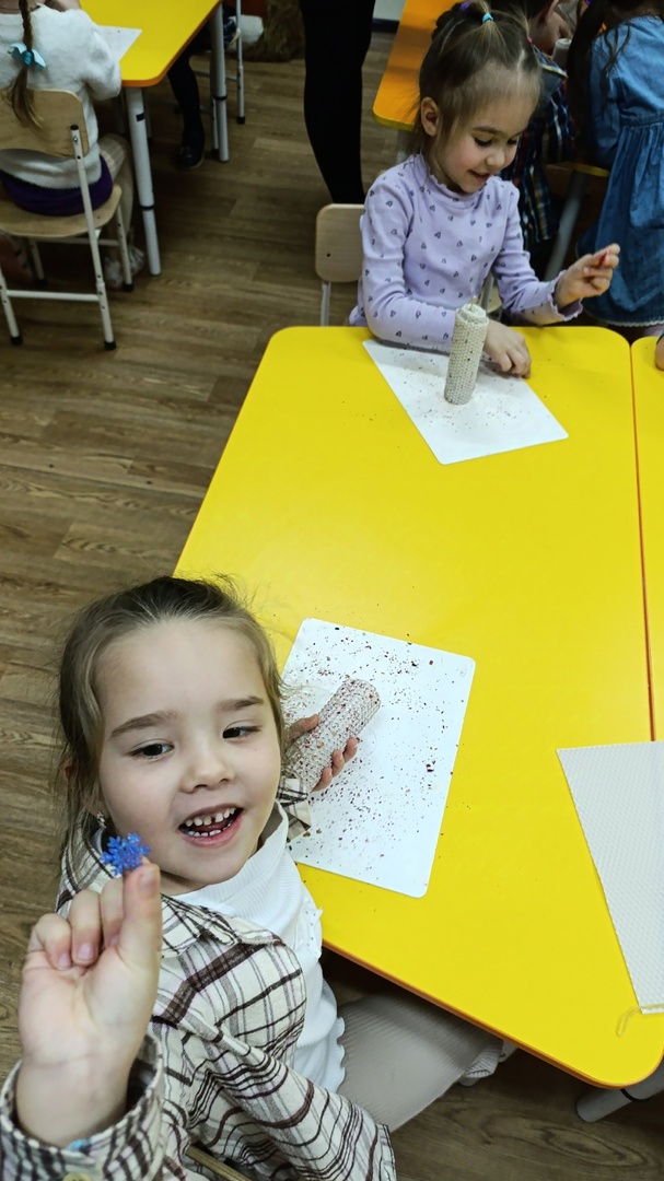 Свечи получились очень ароматными и красивыми, ребята сами уложили фитиль, скатали свечи, добавили ароматные травы, и Ирина Валерьевна помогла украсить свечу еловой веточкой, снежинкой и даже посыпала ее блёстками.