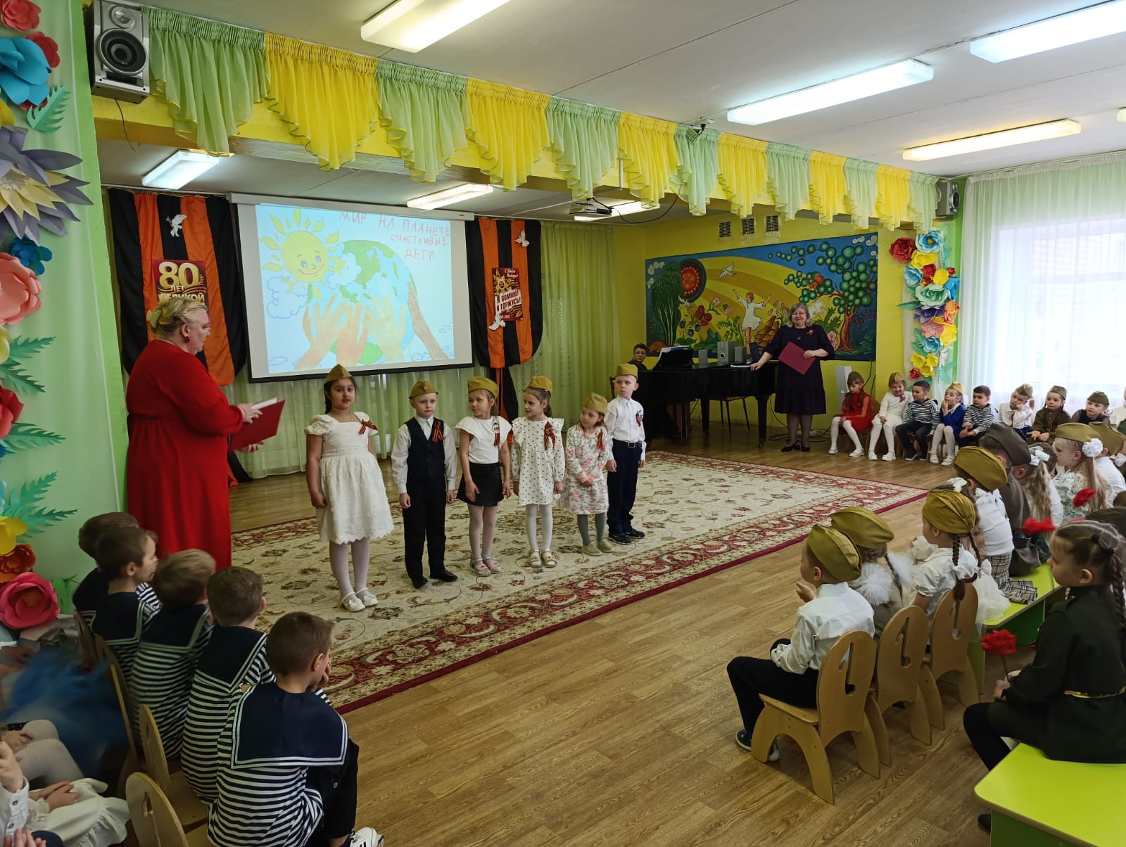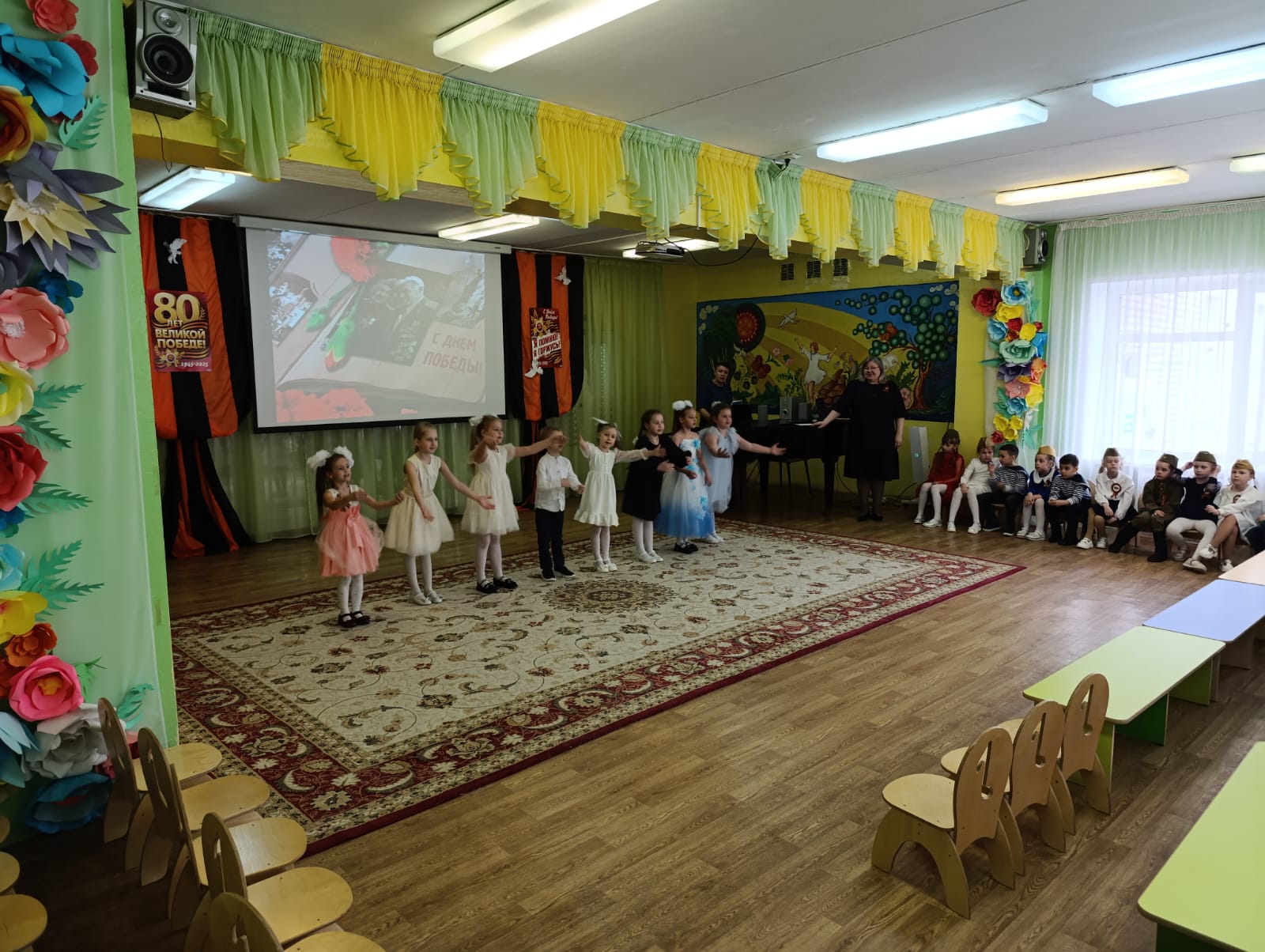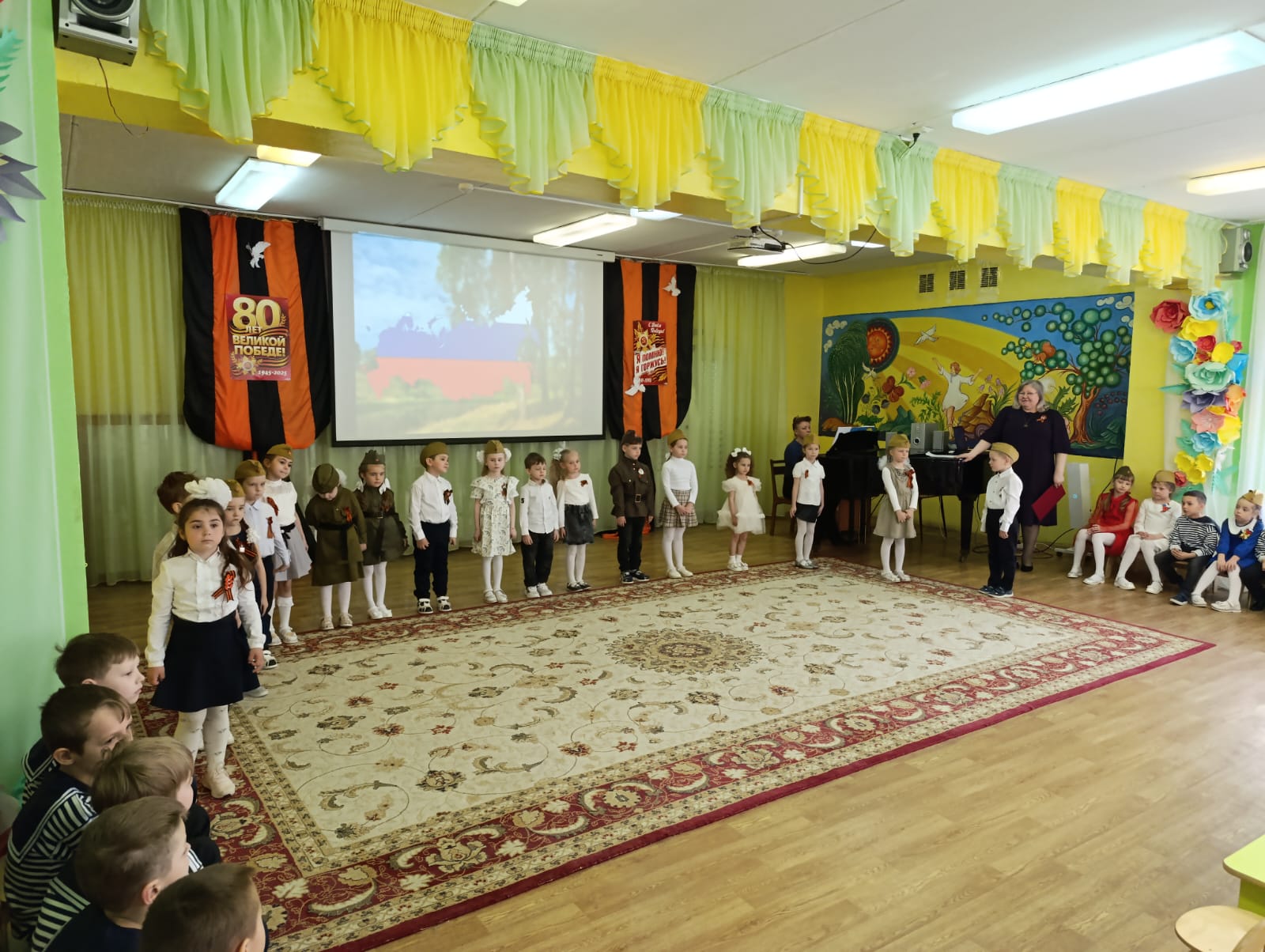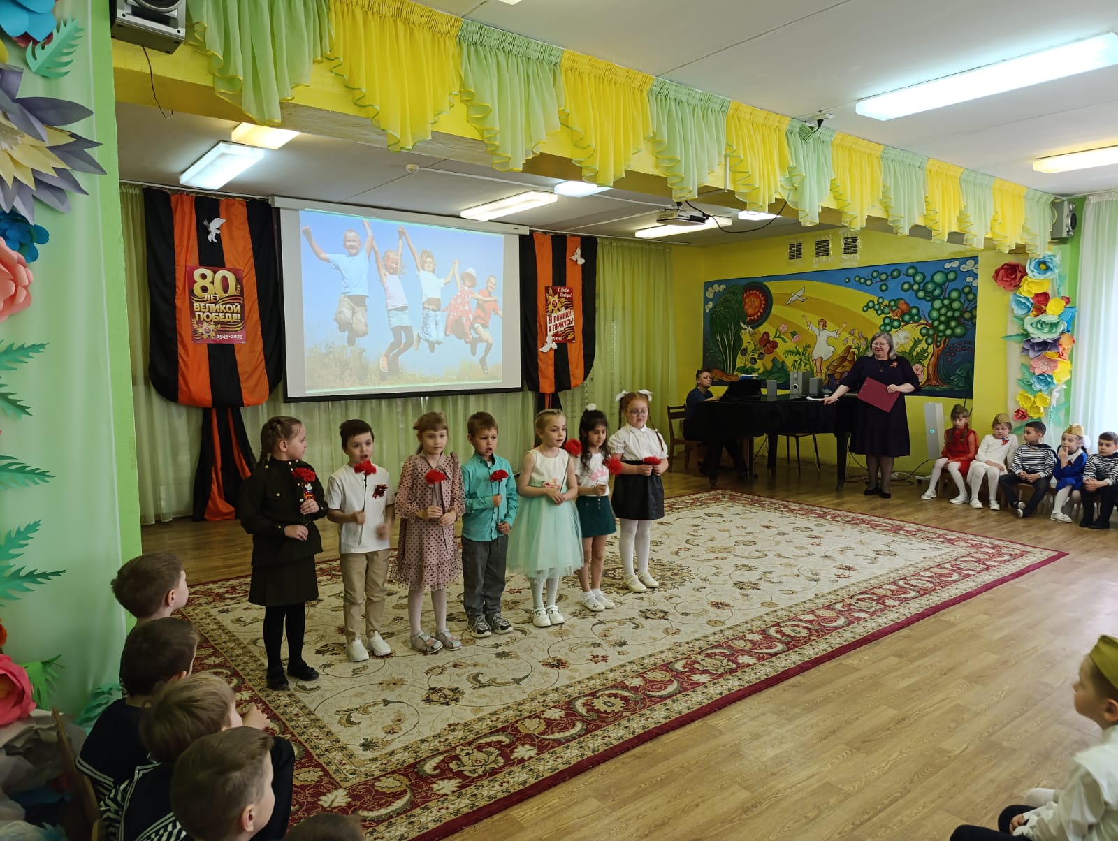 Сегодня в нашем детском саду прошел праздничный концерт, посвященный 80-летию Великой Победы! На празднике дети с благодарностью читали стихи, пели песни, исполняли танцы. Прошло много лет, а память об этом событии живет в сердце нашего народа.